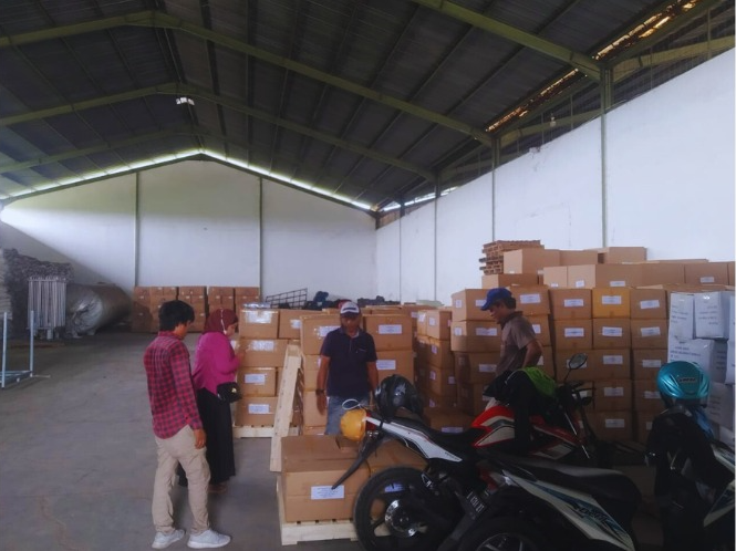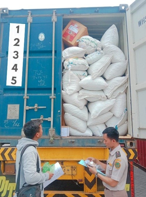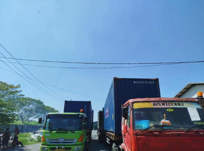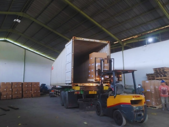 Transfer of goods from domestic containers to international or export containers at the Gresik warehouse